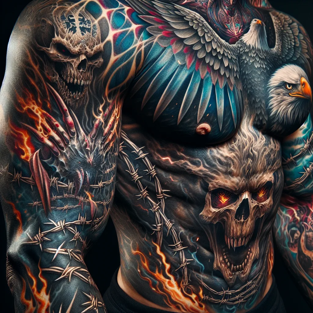 В заключение, брутальные татуировки — это не просто рисунки на коже, а целая философия, отражающая внутренний мир и убеждения их владельцев. Они продолжают развиваться и адаптироваться к современным тенденциям, оставаясь актуальными и востребованными в мире искусства и моды.
